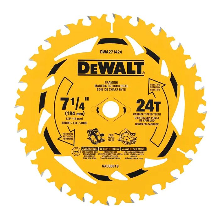 Disco para sierra de 7-1/4 x 5/8”, marca Dewalt modelo DWA271424.