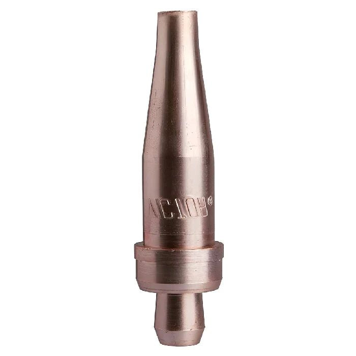 Las puntas de corte de una pieza se utilizan con acetileno y están hechas de una aleación de cobre para resistir el calor del proceso de corte.