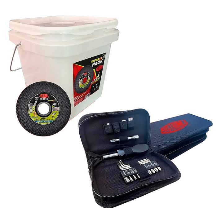 Paquete con 125 piezas de discos para corte de 4-1/2 x 0.04 x 7/8” y kit de herramientas, marca Austromex modelo 73367.