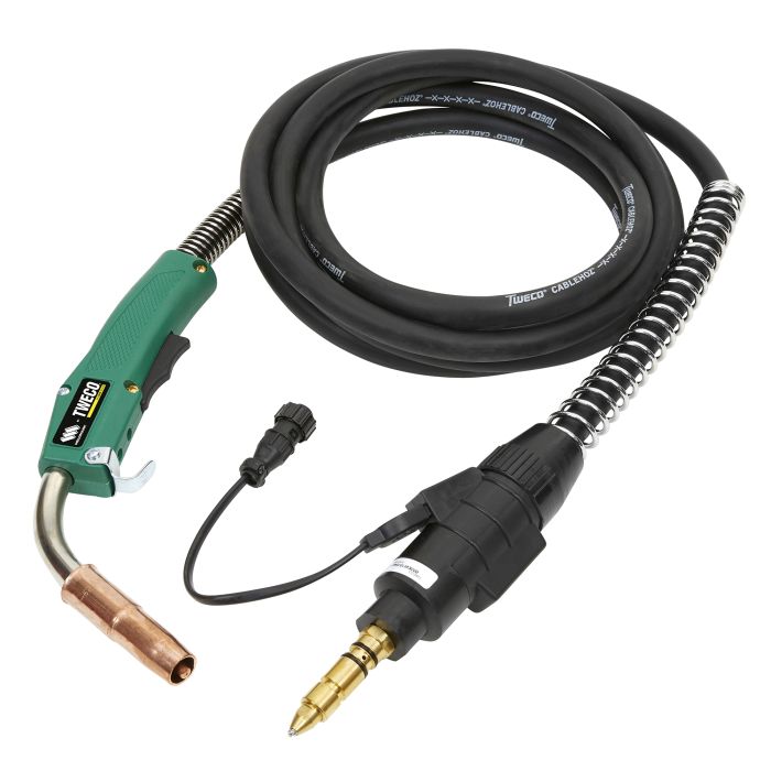 Pistola, de 450 A, con 15 pies (4.5 m) de cable, compatible con alambre 0.035”–0.045”, cuello de 60° y conexión trasera Lincoln®. Diseñada para trabajo industrial de alta resistencia, ofrece ergonomía mejorada y alto rendimiento en aplicaciones exigentes.